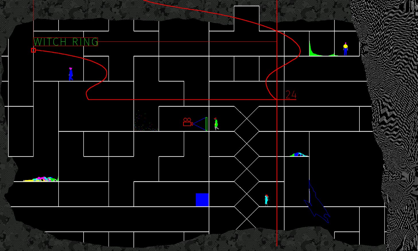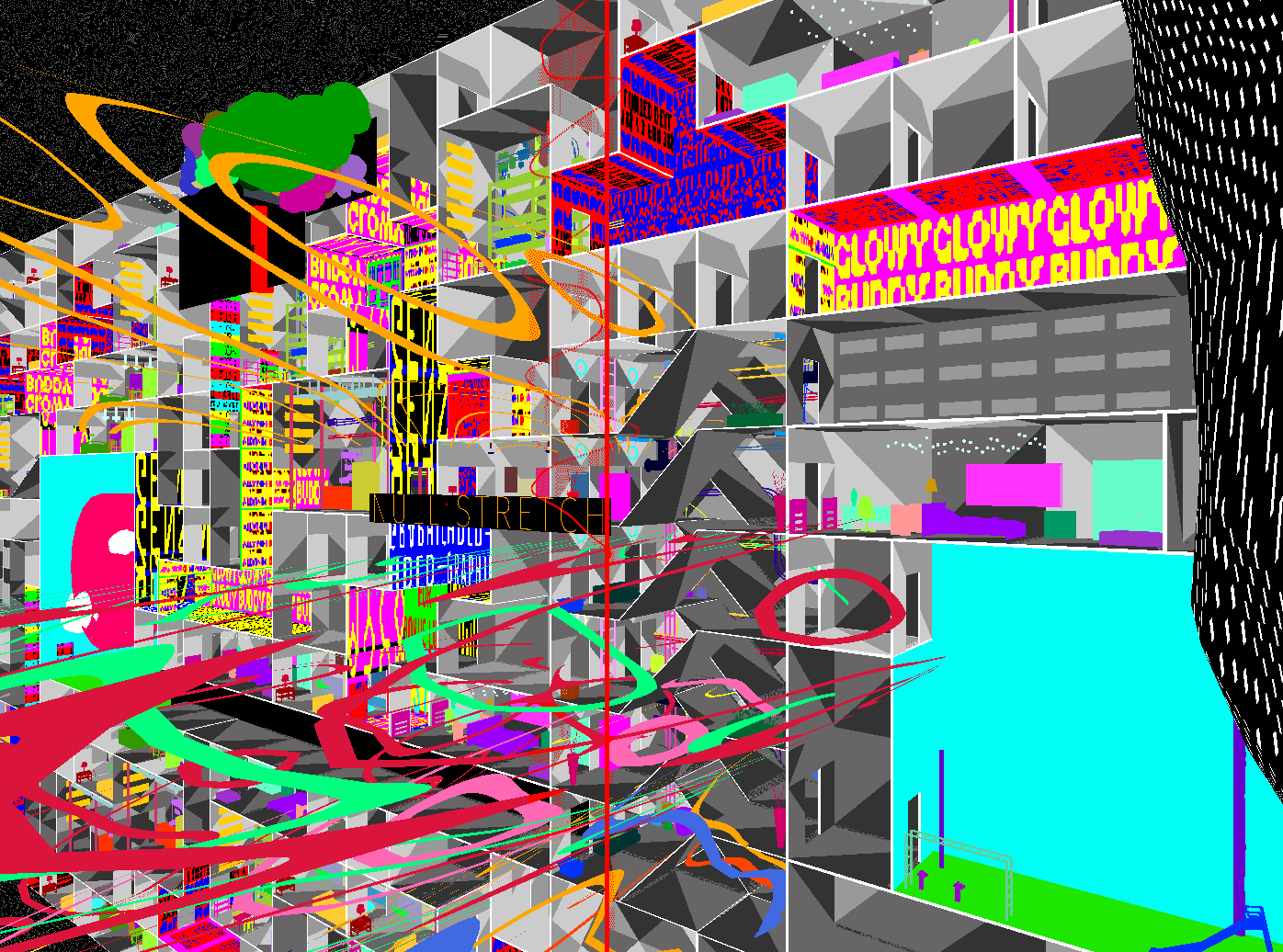 The Zone in Tarkovsky's Stalker is a paradigmatic weird space. It is internally inconsistent, affectively unstable, and epistemologically indeterminate. It cannot be mapped but can still be entered and experienced. The Zone seeks to refuse legibility. In the Aria Engine world, the Dirtscraper aspires to be the opposite: a self-regulating total system. Yet its internal logic continually collapses. Behavioral frameworks glitch. Infrastructure rots. The architecture is haunted by its own failures. What began as a smart system becomes, through decay, something closer to the weird: sprawling, contradictory, and alive. It becomes a Zone.