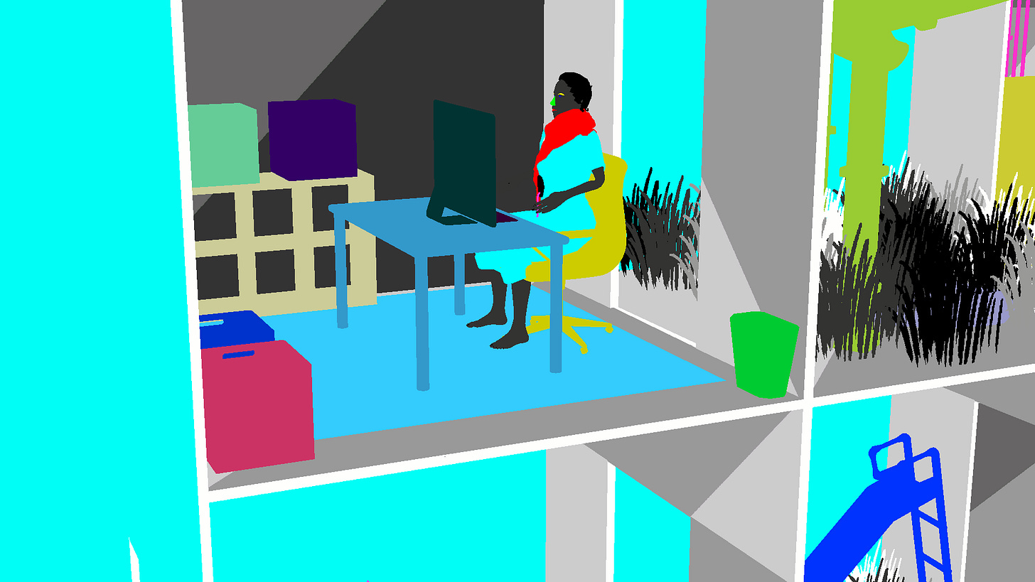 There is a moment for many worldbuilders, I think, when the act of worldbuilding is no longer about discovery but about management. I spend more time sorting than making. The AI doesn't care if I forget what I asked it to make three days ago. But I do. I look back at a design file, a snippet of dialogue, or a model of a broken stairwell in a half-collapsed apartment block and I can’t tell anymore whether it came from me, the tool, or both. The archive is a memory prosthetic, storing decisions I don't remember making but can draw from nonetheless.